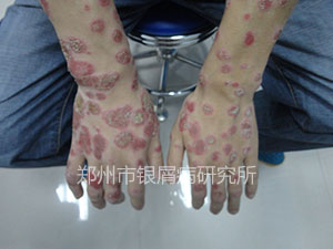 最开始,由于银屑病的瘙痒难耐,工作也比较忙,李福军到当地的医院买了一些药膏配合其他药物使用。起初止痒效果不错,但是没过多久,银屑病不仅没有治愈,反而变的比以前的症状更加严重,并且面积也增大了很多。这让李福军非常着急,整天愁眉不展。一年间,他大医院小医院跑了不少,也治疗很多次,但是都收效甚微,李福军觉得特别对不起自己的女朋友,女朋友看到李福军这样,四处帮他打听治疗的办法,通过网络,最终看到了郑州市银屑病研究所的信息,李福军的女朋友感觉挺专业的,于是,在女朋友的陪同下,李福军决定去试一试。