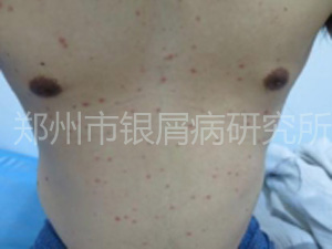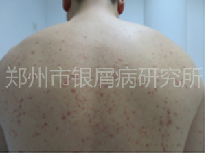 现病史:患者9年前因无明显诱因全身出现米粒大小红斑,瘙痒明显,曾在当地某院医院治疗,外用药:不详。口服药:不详 ,现病情加重今特来我院治疗