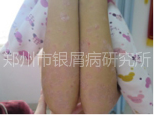 露露(化名)是河南郑州人,今年只有9岁,花苞正待开放的年纪,如花的笑颜一直呈现在她自信的脸上,活泼好动的她甚至有点像个男孩子。然而,异常突如其来的灾难就这样无情的降到她的身上。一次在家洗澡,露露突然发现自己腿上有很多红色的疹子,告诉妈妈后,妈妈以为只是蚊虫叮咬,到药店买了点药膏涂擦后就没有在意,然而随着时间的延长,红疹越来越多,并且上面覆盖一层银白色鳞屑,察觉到异常的妈妈随即带着露露到医院检查,医生给出的诊断是:银屑病。