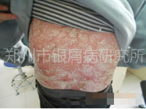 现病史:患者25年前无明显诱因全身出现红色丘疹伴大量鳞屑,发病后间断口服:中药,进半年加重,后口服:中药3月,皮损增多,今来我院就诊。