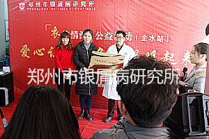 为了帮助更多贫苦人群,创造和谐社会。2016年1月14日,郑州市银屑病研究所“衣往情深 温暖人心”大型衣物捐赠公益活动在医院门口举行。医院全体医护人员参与其中,旨在为贫困人群送温暖,让爱心传承中华美德,辐射影响人群上千人。